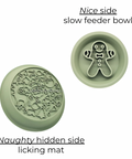 Naughty or nice, there’s still a treat for every dog! Whether it’s fun & groovy or chill & smooth, this dual function platter doubles up as a slow feeder on one side & a licking mat on the other!